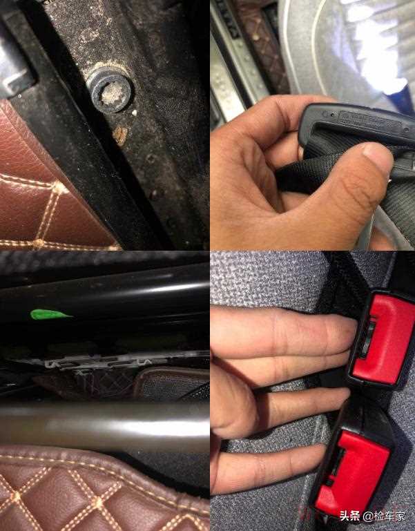 检测座椅底部滑轨螺丝及安全带卡扣,螺丝无拆卸痕迹安全带生产日期与车辆出厂日期基本符合,安全带卡扣内部无生锈泥沙痕迹。