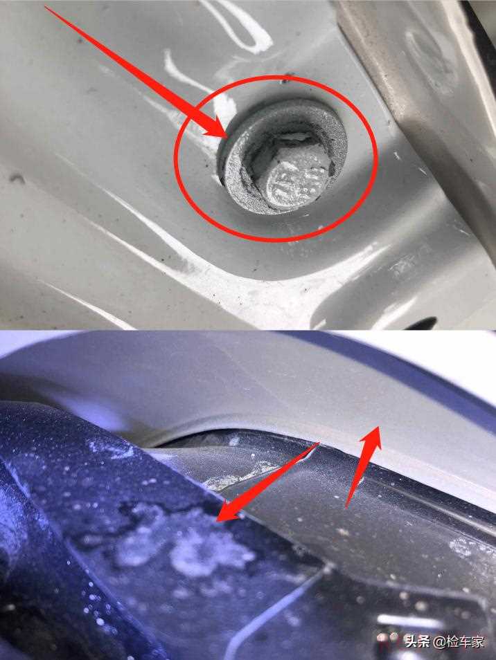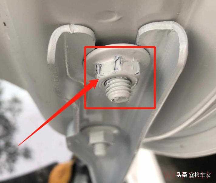 检测机盖合叶及固定螺丝,螺丝明显有拆卸痕迹,这漆喷的也真的是太粗糙了,机盖固定螺丝拆卸喷漆机盖内部喷漆,这就更加印证了机盖有过更换。