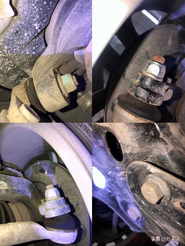 检测车身悬挂系统螺丝周边附件及元宝梁固定螺丝均无拆卸痕迹。