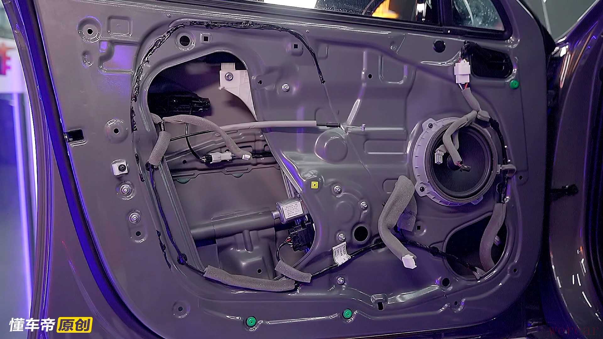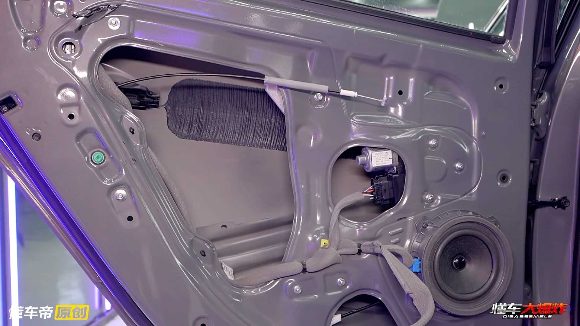值得夸一下的是,索纳塔门板上的所有线束,基本都有发泡或者泡沫材质包裹,可以减少车辆行进中线束碰到覆盖件发生的异响。虽然在以往拆解的车型中也见过,但覆盖这么全的确实少见,冲这个细节,可以给个好评。