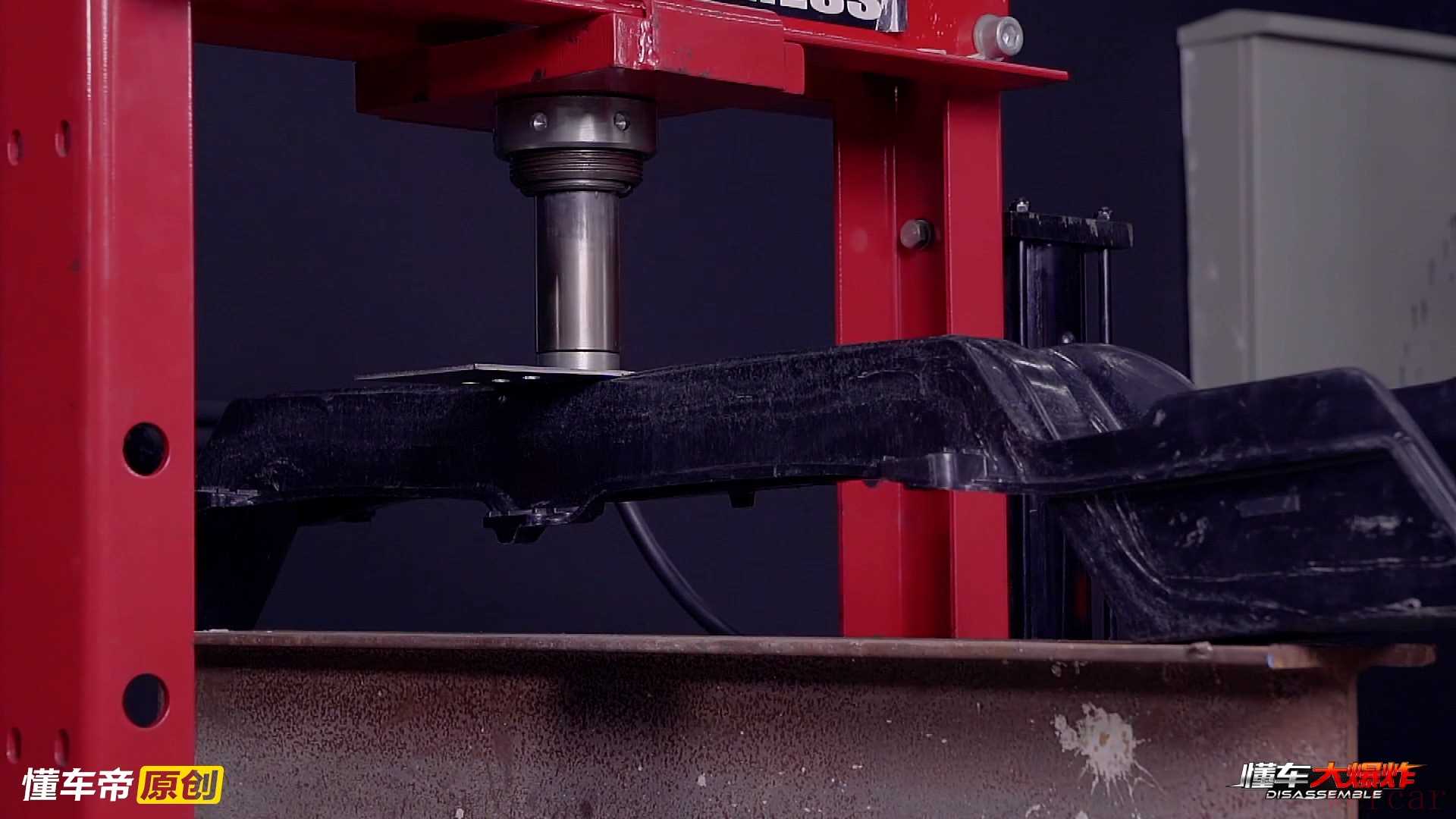 那全球的索纳塔都这样么?并不是,通过与美国现代官方的客服的沟通,我们得知北美在售的第十代索纳塔的后防撞梁是高强度钢材质。很显然,中美差别对待实锤了。那塑料复合材料的防撞梁实际强度如何?我们做了个简单且可能不太严谨的实验,实测结果来看,这根PP-GF40的防撞梁强度并不高。