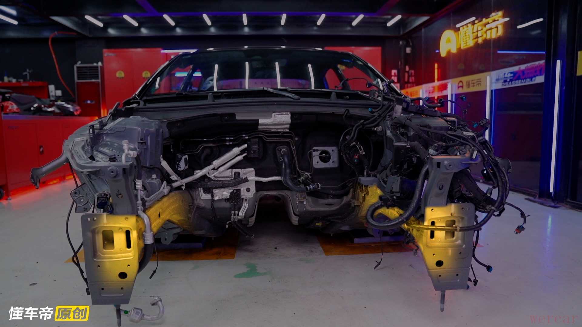 首先,我们还是按照惯例,先拆下索纳塔的前后保险杠,看看这台车在基础防护的表现。