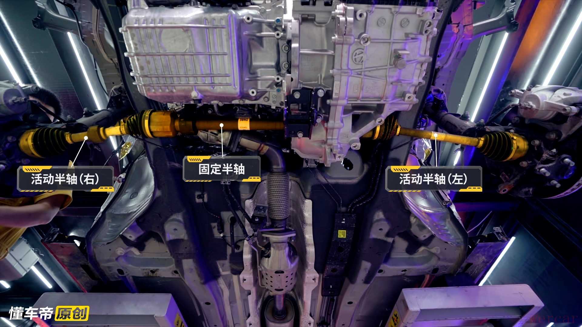 比较特别的是,索纳塔的前半轴有针对扭矩转向的优化,长半轴有一段是固定在车架上的,这样可以尽可能的让左右两侧半轴角度一致,保持相仿的传动特性与效率,避免扭矩转向,在测试中我们也确实没有发现索纳塔有扭矩转向的情况。
