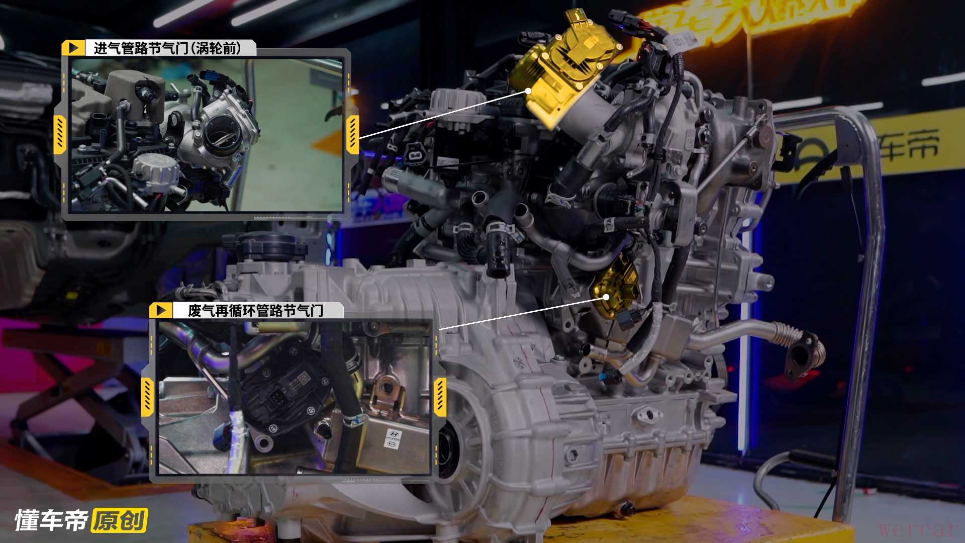比较让我们好奇是,这台发动机除了常规的节气门,还多了两个节气门。对于这个结构,由于我们没有获取到官方资料,只能顺着管路给大家分析一下。