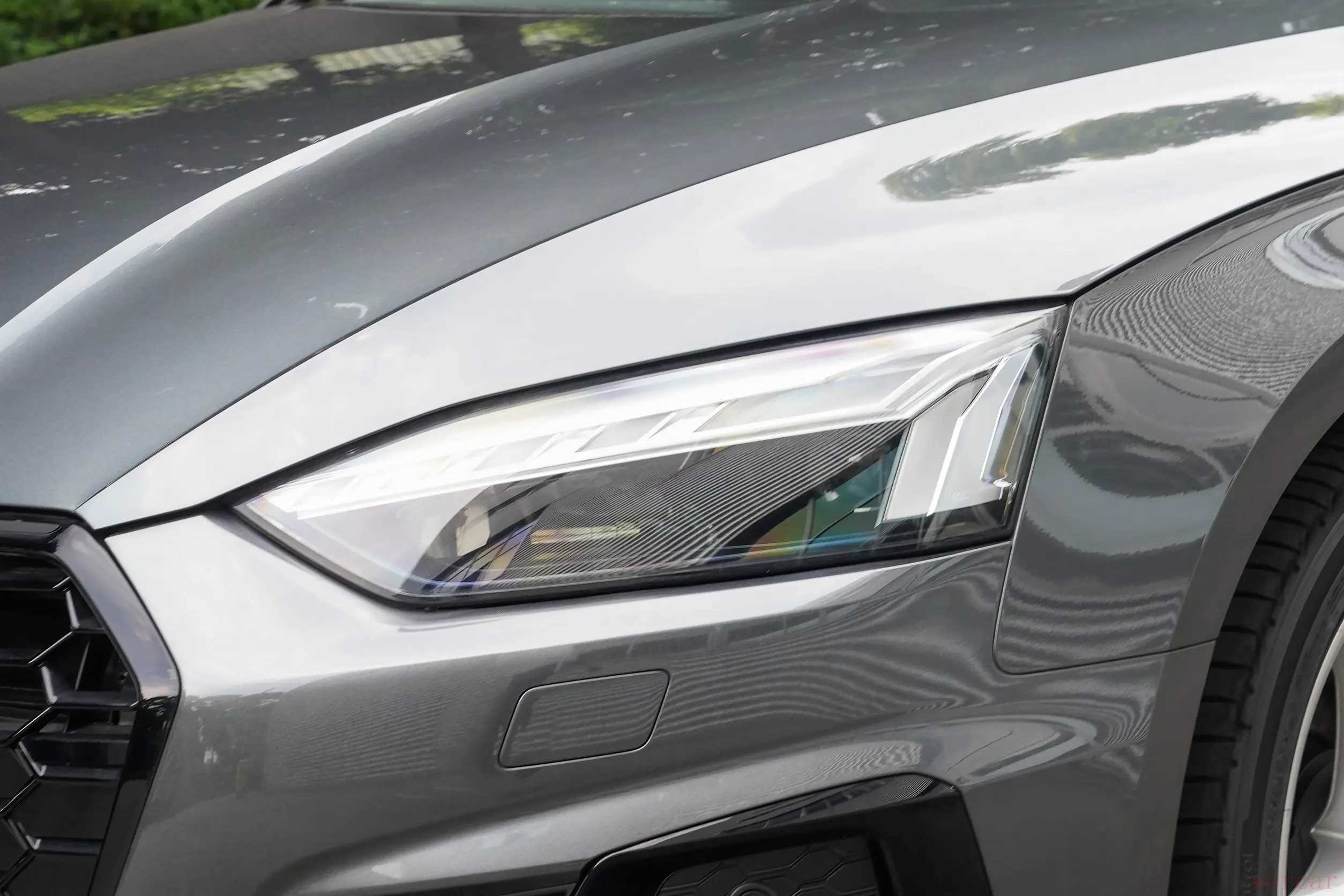 "外观:" “六边形”中网、流畅的车身线条、标志性的泪眼大灯(LED光源时效果更佳),整体造型非常时尚、动感,符合奥迪的豪华运动风格。在同级别中,A5的外观辨识度很高,确实容易吸引眼球。