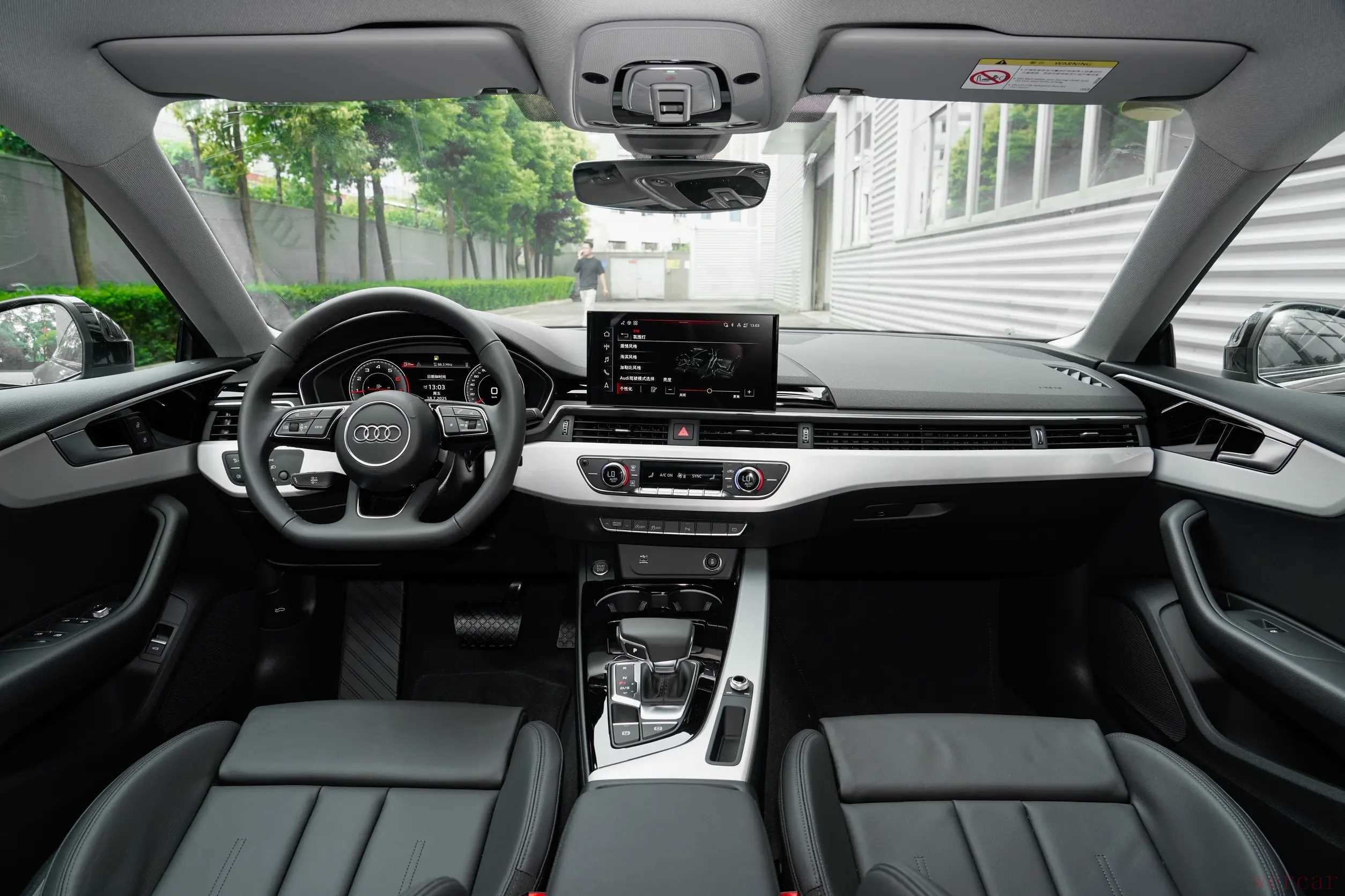 "内饰:" “虚拟座舱”是A5的一大亮点,全液晶仪表盘和中控大屏科技感十足,显示效果细腻,信息丰富。内饰材质和做工属于同级别中上水平,环抱式设计,氛围营造得不错。
