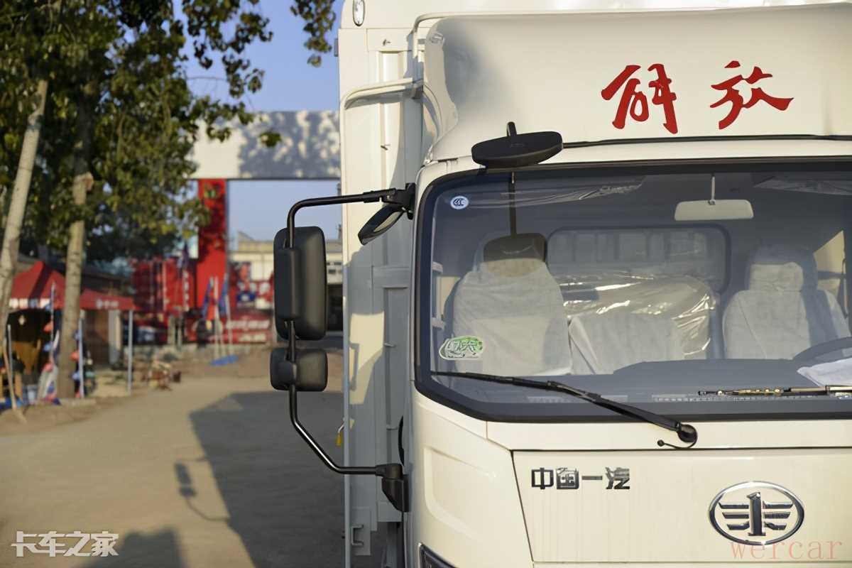 原厂导流罩上的“解放”可以说是深入人心,极具辨识度。大面积前挡风玻璃的设计也驾驶员带来了更加宽敞的行车视野,同时A柱倾角幅度更小,有利于观察到四周情况。