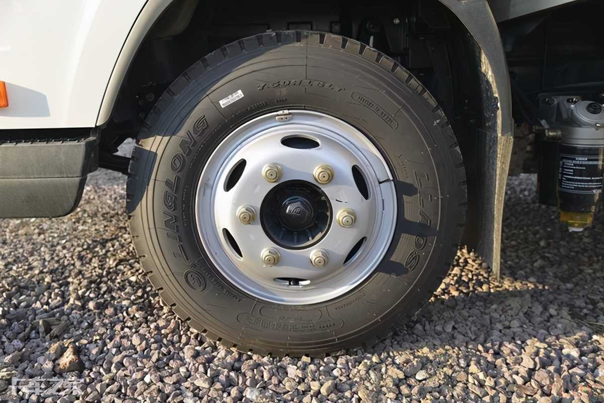 这款解放J6F轻卡配备玲珑品牌轮胎,规格为7.50R16LT,主打经济耐用。从轮胎规格来看,完全符合当下蓝牌轻卡运输趋势。