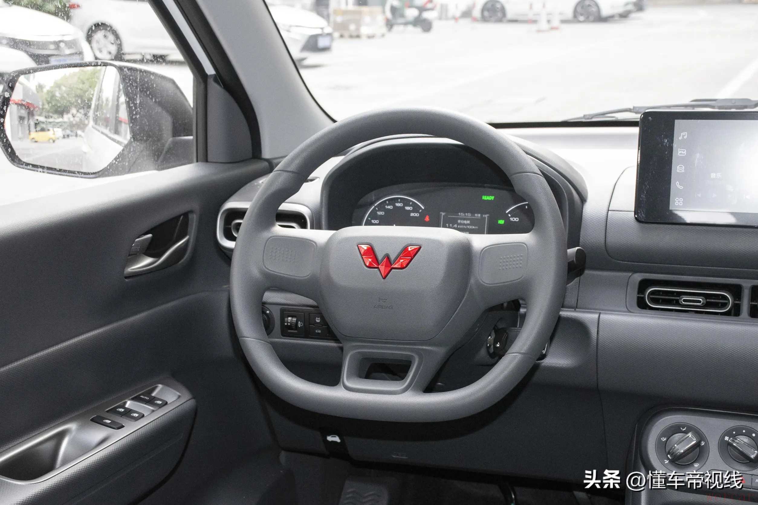 实车图片显示,全新五菱宏光增程版整体设计风格简洁,中网设置有散热开口,与之对应,纯电版车型选择了全封闭式前脸。高配车型提供带透镜的前灯组,搭配半封闭式轮辋罩,保持侧开式车门。