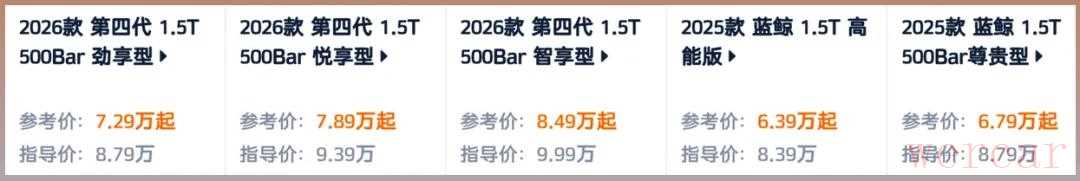 5.  "配置:" 中低配车型往往也配备了满足基本需求的科技配置,如USB接口、倒车影像等,部分车型可能还带有一键启动等。