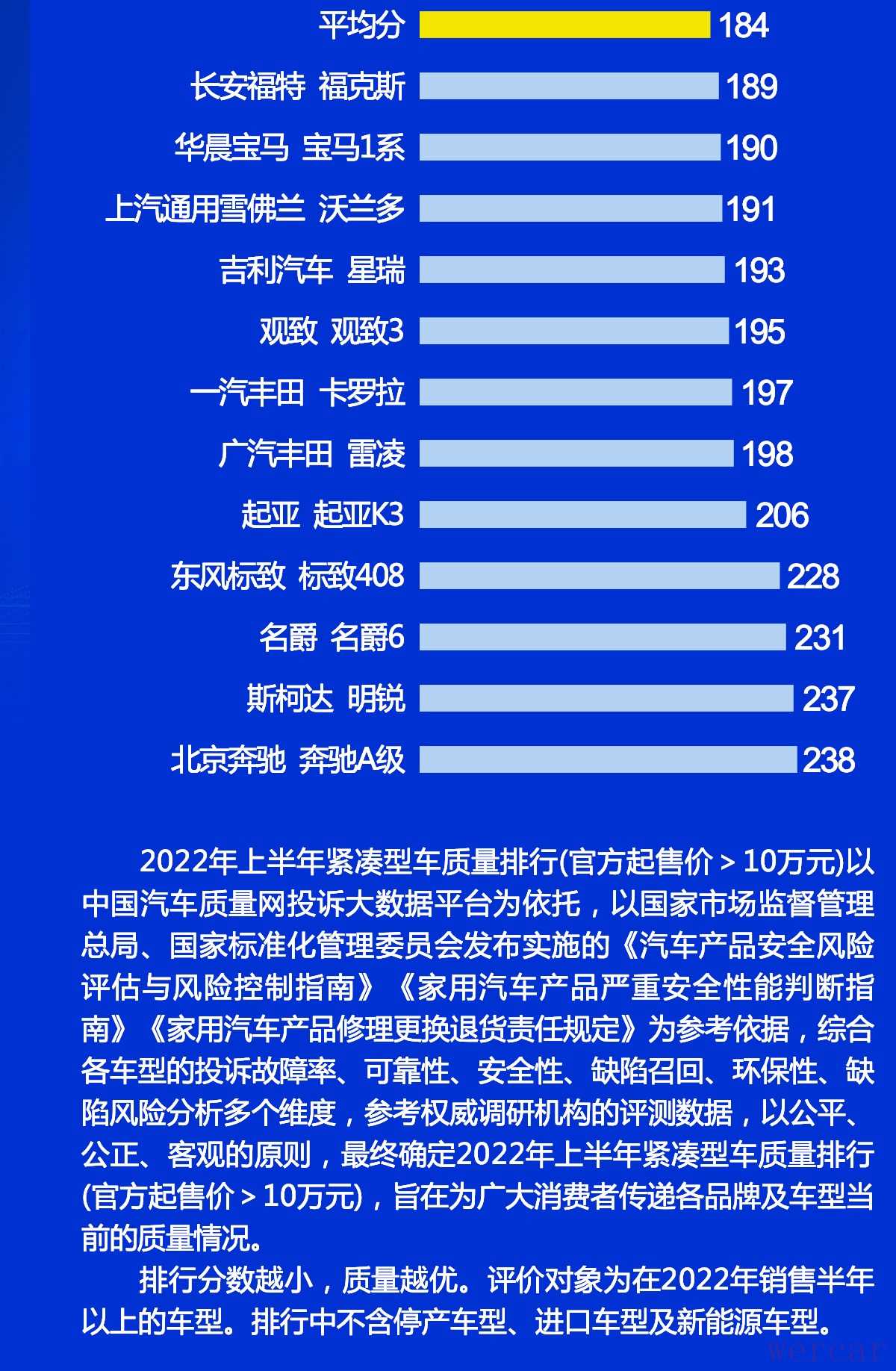 购车必看!紧凑型车质量榜出炉,仅14款及格,英朗第十,朗逸意外上榜
