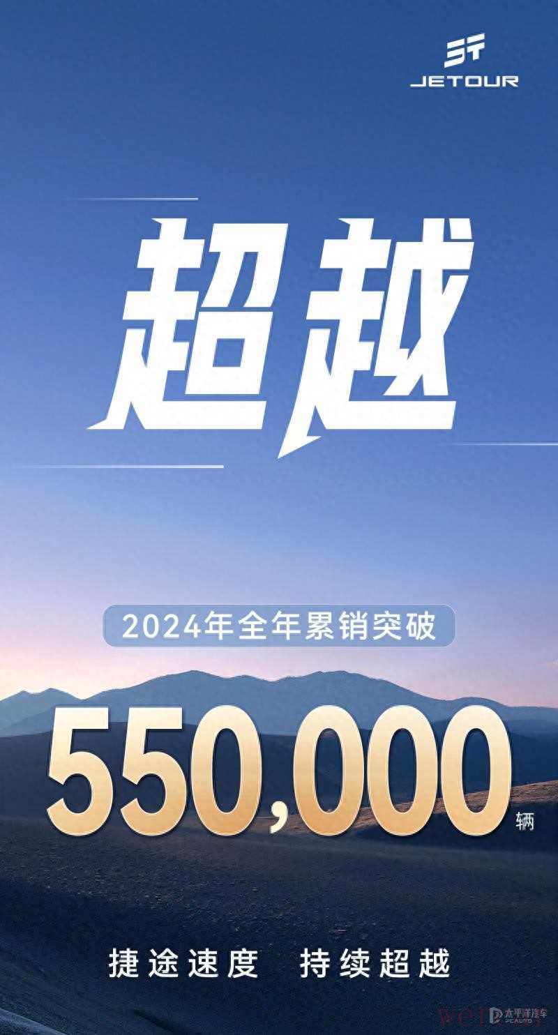 【太平洋汽车 行业频道】日前,捷途汽车宣布,2024年全年销量突破55万辆,捷途汽车用76个月的时间实现销量突破150万辆,2025年捷途汽车将未来目标锁定为年销80万辆。