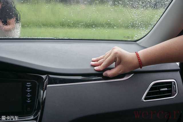 包裹中控台的材料硬度较高触感一般。