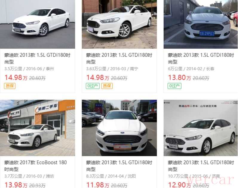 关于价格方面,如果真的是13万卖10万,那就要好好检查车况了,因为13款1.5的蒙迪欧目前市场价在13万上下。