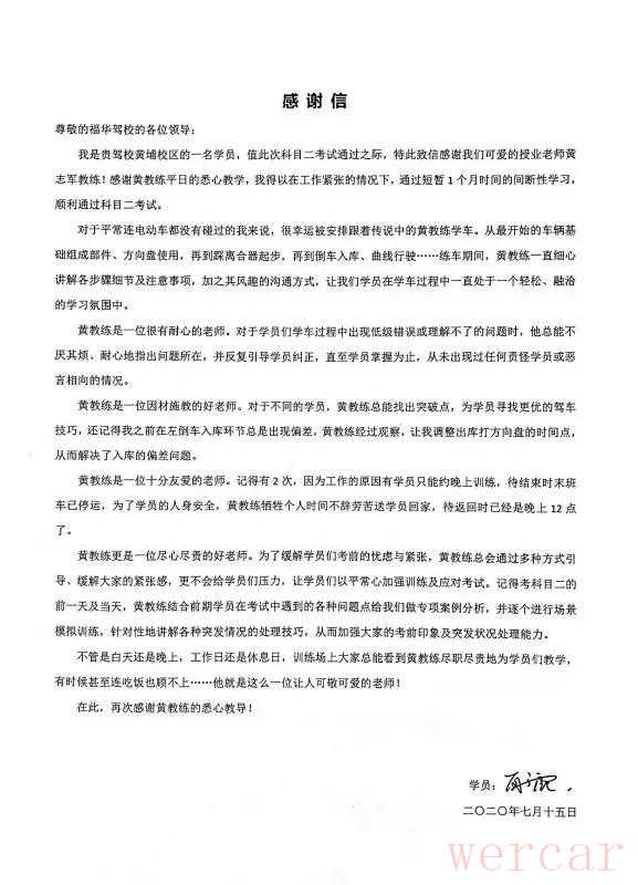 福华驾校一直致力于培养优秀的教练,得到学员们的支持,我们一定会更加努力、细心服务每一位学员!