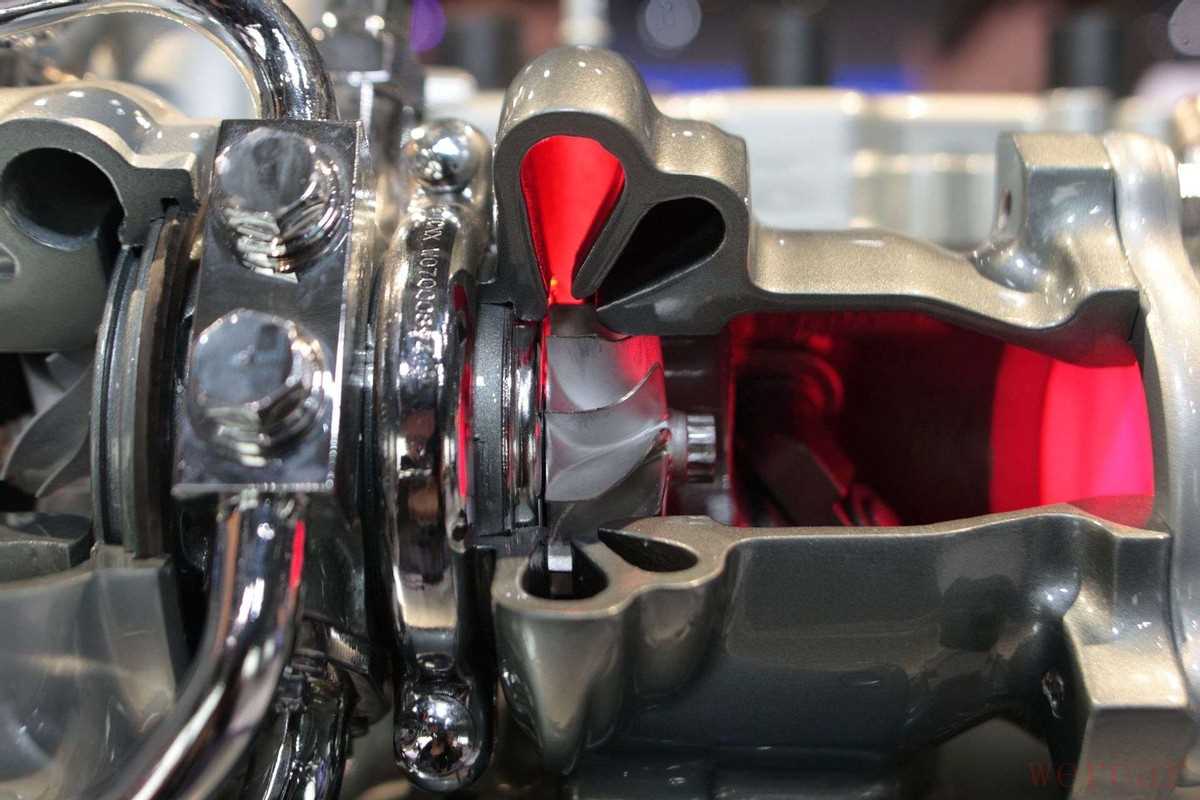 (三菱的双涡管涡轮增压器横截面,两个燃油喷嘴)