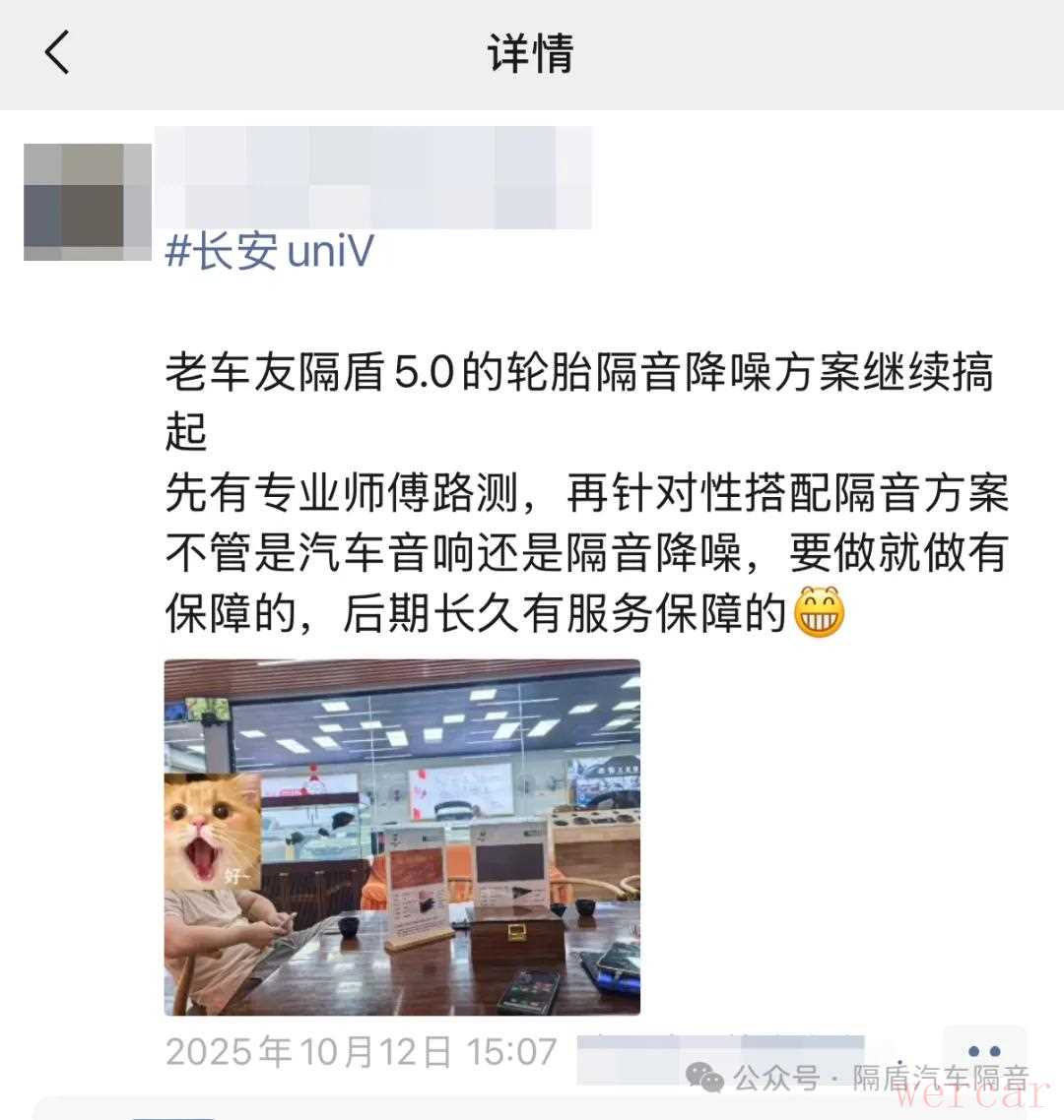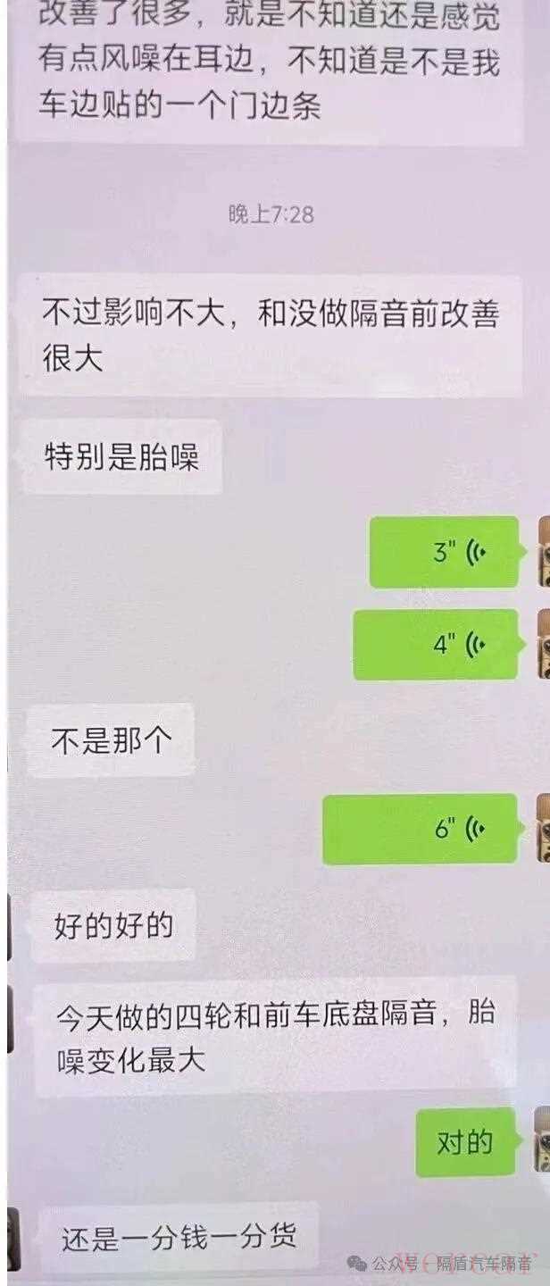 隔盾隔音深信:没有效果,一切皆是空谈。为此,隔盾隔音从不提供“流水线”式的隔音方案,拒绝同车型的简单复制,也杜绝无谓的施工与材料堆砌。隔盾隔音所做的,是基于专业路测与车主具体需求,为每一辆车量身定制,直击噪声根源。这份对实效的执着和坚持,最终化作了车主口中“胎噪减小特别明显”的真实反馈和认可。客户反馈胎噪、风噪得到有效解决