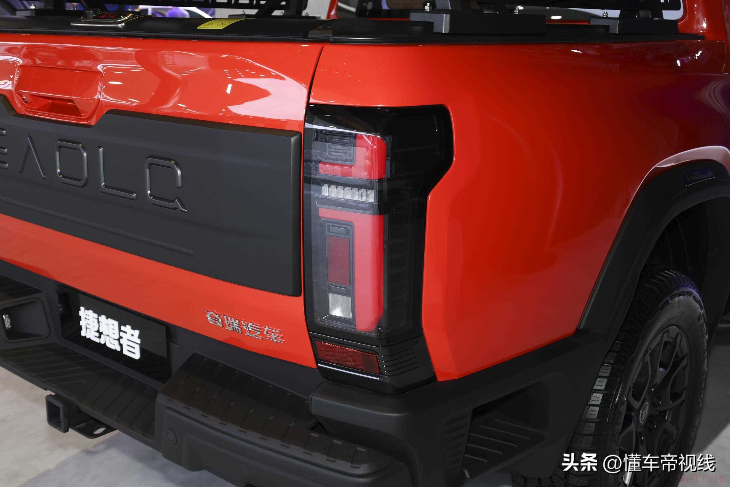 车身侧面,捷途捷想者配备有涉水喉、钢制侧踏板、黑色轮辋以及全地形AT轮胎。车尾部分,该车尾门加入有黑色装饰面板,风格与车头相呼应。同时,该车尾部设计有拖车钩,货箱上侧配备有置物架,可扩展更多装备。