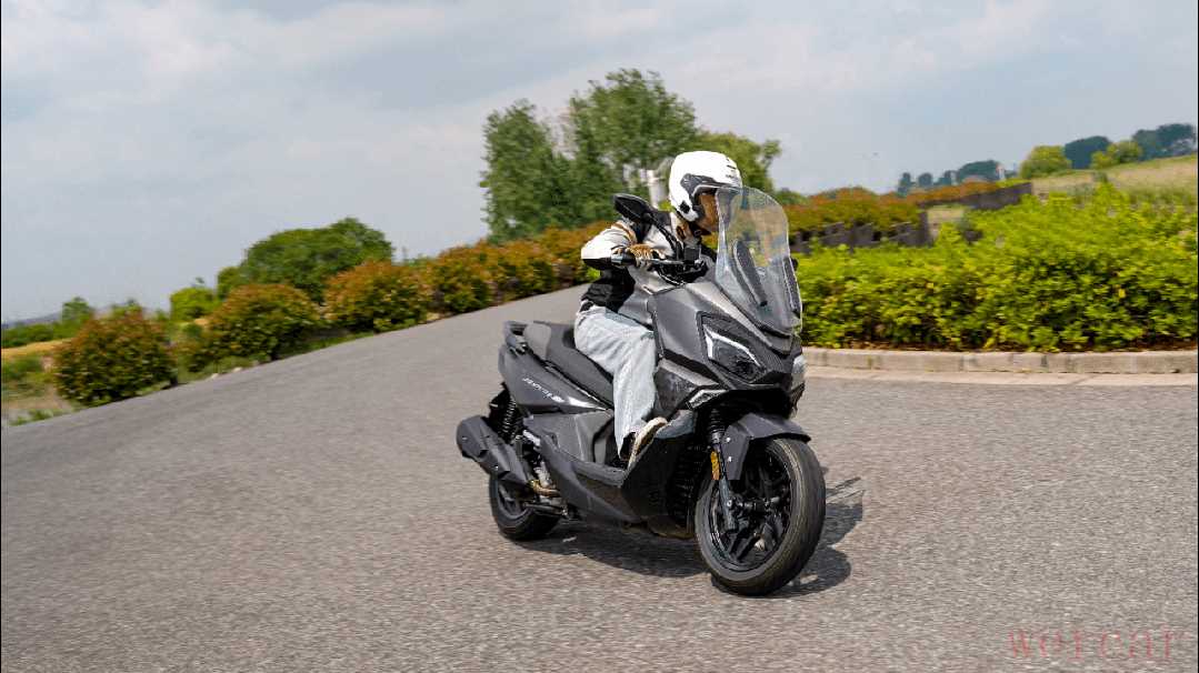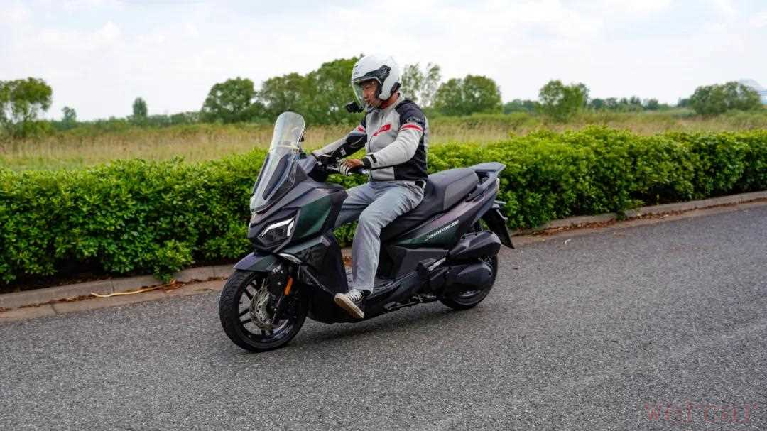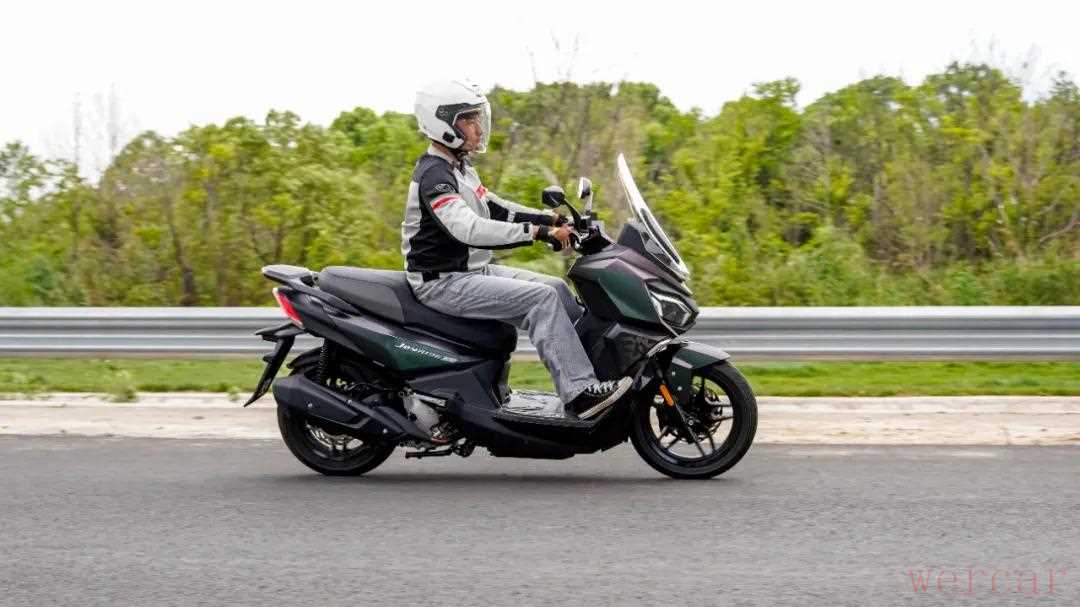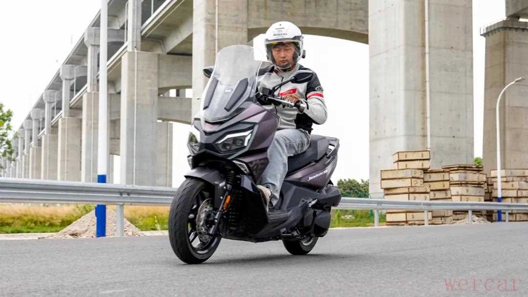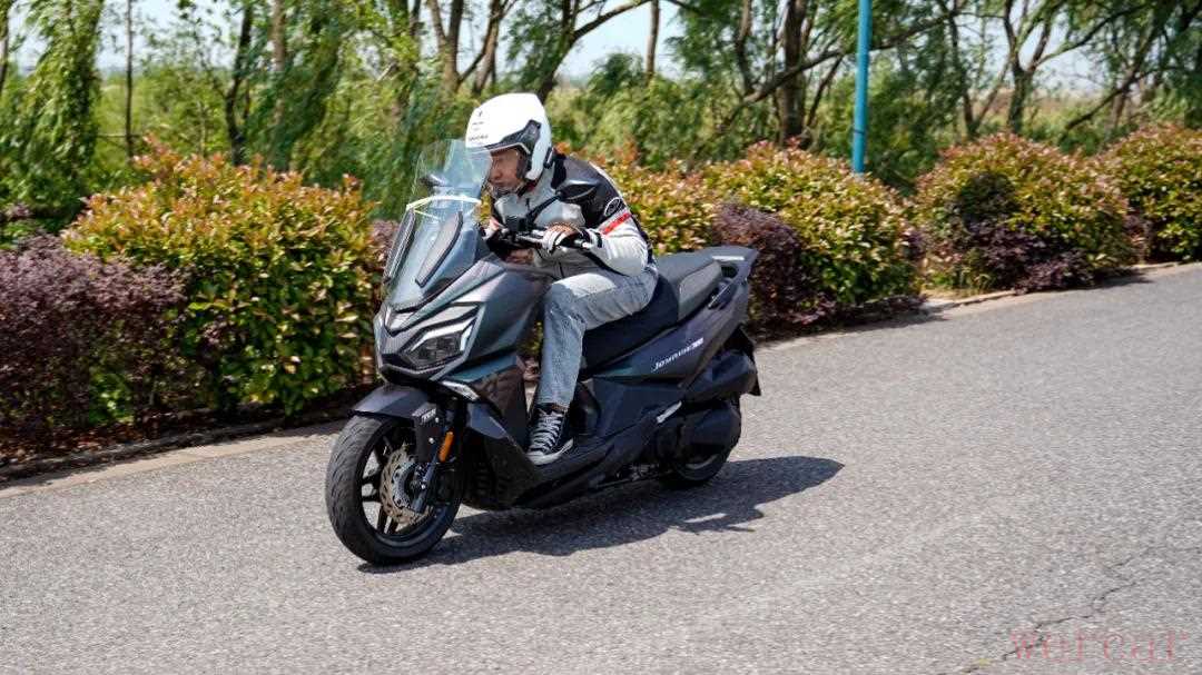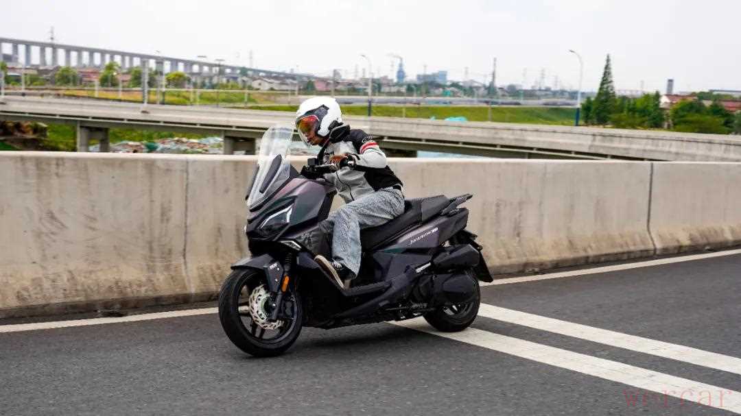 实测0-60km最好成绩为3.7s,0-80km/h最好成绩为6.4s,0-100km/h为10.8s,加速成绩在同类踏板中居于中上水准,出力特性是注重中低转输出,用来日常以及旅行使用,非常合适。实测表显极速为144km/h,P-BOX同步显示为135.2km/h,这基本是行者300的极限速度了,极速时的稳定性优异,无任何发飘感。