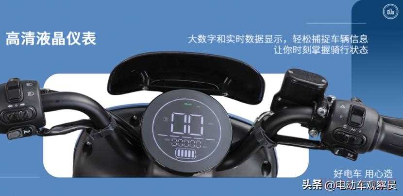 这款车的仪表是整车的一大特色。配备的高清圆形液晶仪表,其贴心的大数字显示方式,让你在了解车辆信息时毫不费劲,在日常光下,照样清晰可见。圆形的设计,流畅和谐,和整车风格浑然一体。此外,车辆在面板烤漆上,采用的是专业的摩托车级别喷涂,细腻、均匀、不易褪色,日晒雨淋也能持久弥新。