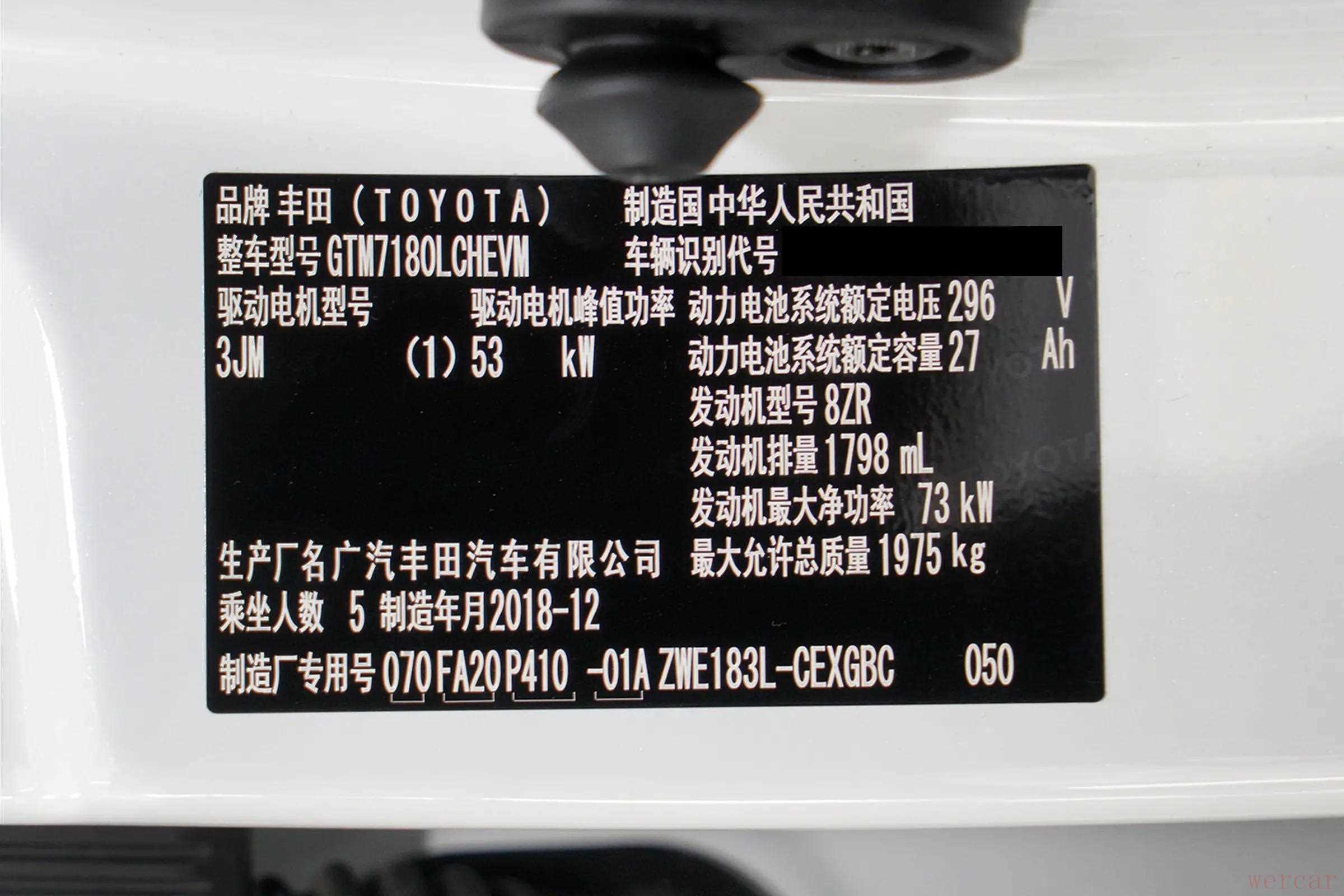 丰田雷凌双擎E+ 2019款 1.8PH GS CVT精英天窗版本,使用插电式混合动力,搭载一台1.8L自然吸气发动机,最大99马力、扭矩最大142牛.米,和一台72马力、207牛.米的永磁/同步电动机,变速箱E-CVT无级变速,NEDC综合油耗1.3L/100km、油箱容积40L。10.5kWh的锂离子电池,慢充3小时,纯电续航里程55km,百公里耗电量10.3kWh/100km。