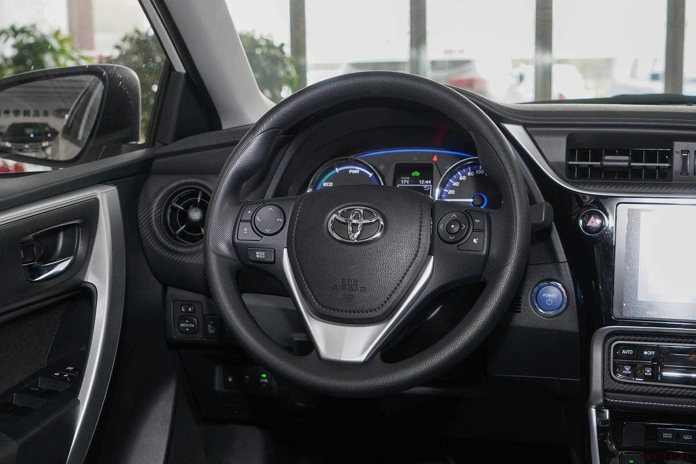 丰田雷凌双擎E+ 2019款 1.8PH GS CVT精英天窗版本,中控台纹理磨砂元素,有着碳纤维饰板视觉感。8英寸多点触控电容大屏,配置了导航路况、车载蓝牙、CarLife、4个安全气囊、倒车影像、无钥匙启动等。