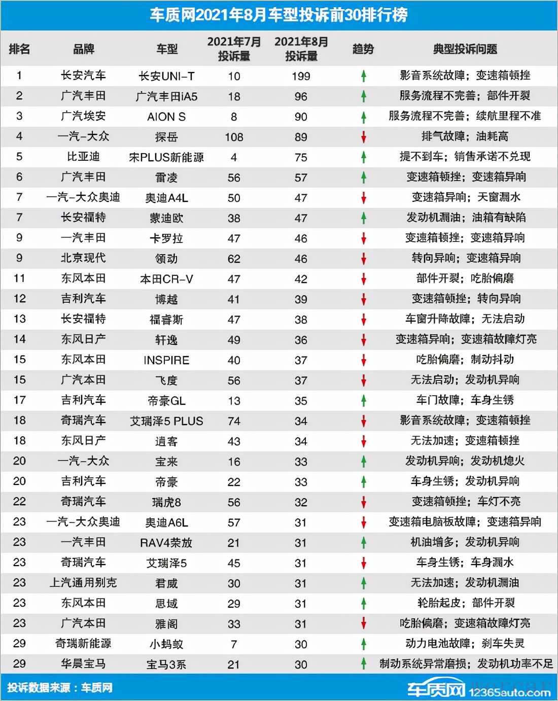 近日,车质网根据车主对各大汽车品牌的投诉情况,整理出了8月份汽车质量投诉排行榜。这份榜单对于近期想要购车的消费者来说具有一定的参考性。