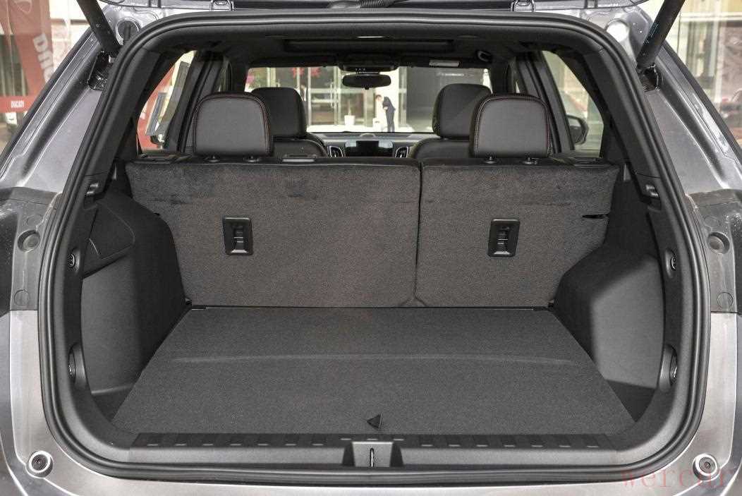 从车身尾部来看,第一眼看到的就是底部双边四出排气,冲击力第一时间拉满,其余环节倒是比较饱满,尾部略微有一些上窄下宽。尾灯组加入熏黑处理,没有紧跟时代采用贯穿式设计。作为次顶配车型,提供电动后尾门功能,后备箱容量日常够用,跟同级别中型SUV来比有些小气,常规状态下在431L,后排座椅放倒后可扩容到1505L。