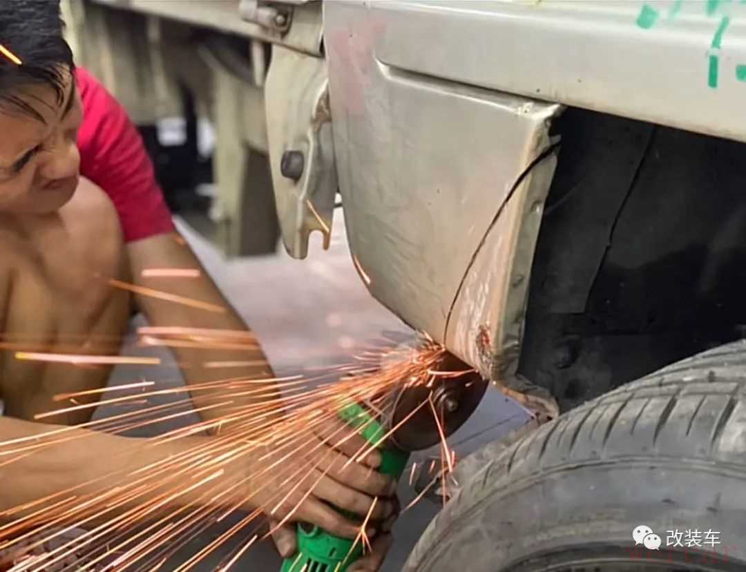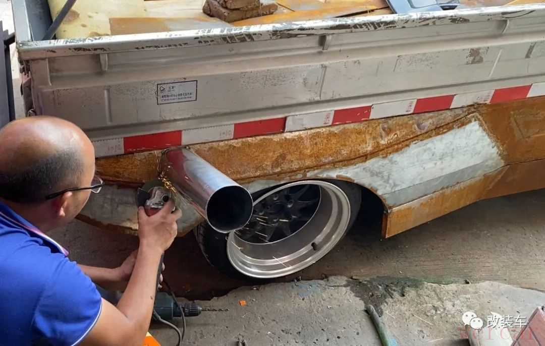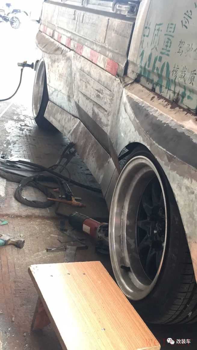 "首先是行走方面,换上了定制绞牙避震搭配上祖国版大抛边轮毂,换轮毂和避震这看似很简单的拆装,实际上却花了不少心思去研究。"