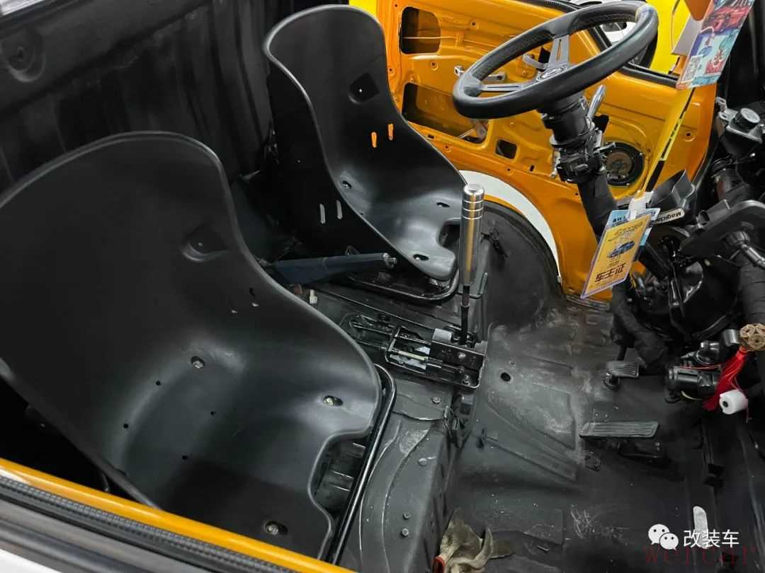 "内饰方面,换上了赛用方向盘、‘超轻版桶椅’,看起来是非常有烂仔范!"