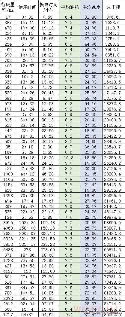这个油耗记录应该是全网最长最全时间记录,有原始照片有公里数有行驶时间,平均速度都齐全,还囊括天气温度,历时6年。保养质保期内都在4S换的原厂全合成机油5W-20的,后面换了金美孚EP的0W-20,用过银色5W-30感觉动力粘滞。更换周期4s是5000前后面EP是8000-10000,机滤空滤均用曼牌,马勒的燃油滤,空调滤芯选择韦斯特的活性炭。这个选择脱保后就再也没变过。那个行车电脑是有限制的我行车电脑2是从来不清零,可能有问题,因为表底记录最大是9999KM,时间是999:60小时,超过就会变0,但平均油耗就不会变,我猜是显示问题。