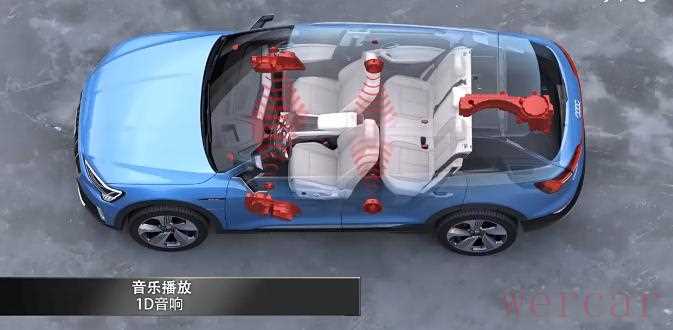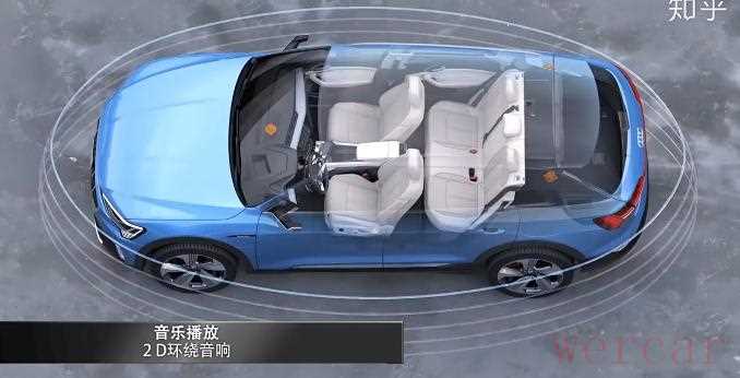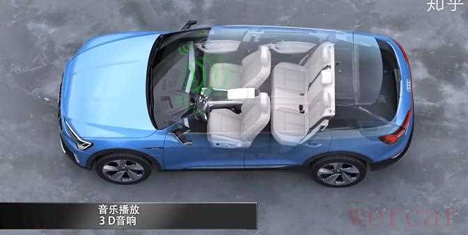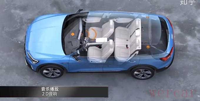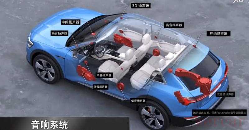 奥迪e-tron 3D音响效果,配合了两颗3D扬声器。