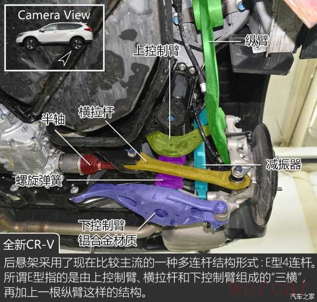 就在一年之前,全新本田思域上市,而当时的我只关心一件事:它的底盘成了什么样?新老款有着什么区别?结果发现它的后悬架竟然取消了L型下控制臂,改成了E型多连杆这样的“标准”结构。作为同技术平台出身的全新本田CR-V(以下简称全新CR-V),难道它就是一台“加高加大版”思域吗?我看还不然。