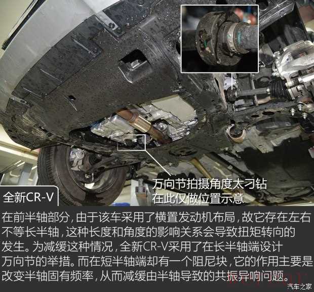 这样的设计并非全新CR-V独有,而是很多横置发动机车型都会存在的一种优化设计,这个万向节可以让两个半轴的几何角度优化更好。而阻尼块更多是为了优化NVH,降低由半轴导致的异响。