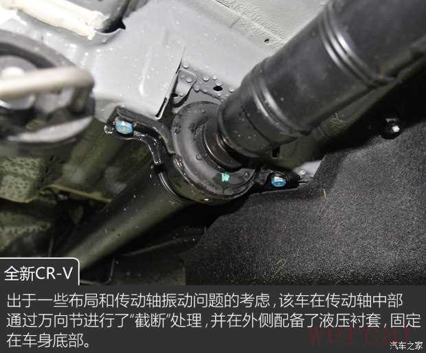 这种“截断”处理也并非是全新CR-V独有设计,很多SUV车型的传动轴都会在中间进行这样的处理,以保证传动轴能够与底盘贴的更近一些,从而增加该车的纵向通过角,并减小驱动轴受到磕碰损伤的风险。