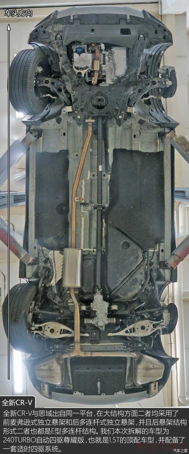 看完了全新CR-V的底盘之后,相信你也就理解为何我说它的悬架“加BUFF”了:虽然与思域同源技术,但在诸多细节方面,二者还是展现出了很大差异。对于CR-V来说,它是一台SUV,需要更高的强度与刚性,所以它便会在一样的结构基础上重点强化下控制臂。再往大一些说,本田似乎并不像因为“平台”这样的概念而局限于其产品本身,同样的构架,不同的优化,达到完全不一样的效果,才是他们想要的。