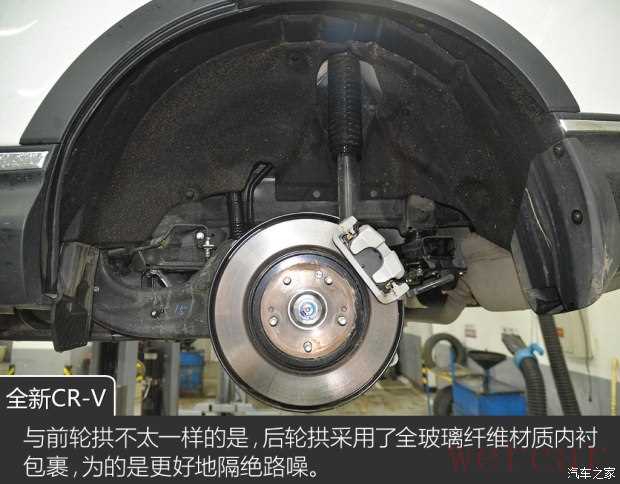 与前悬架相比,后悬架方面似乎要“有料”一些,一根硕大的铝合金下控制臂便能说明,虽然同源,但全新CR-V还是有着一定优化设计的。铝合金材质相比较传统钢质材质具备更好的轻量化特性,当然它的成本也要高一些。