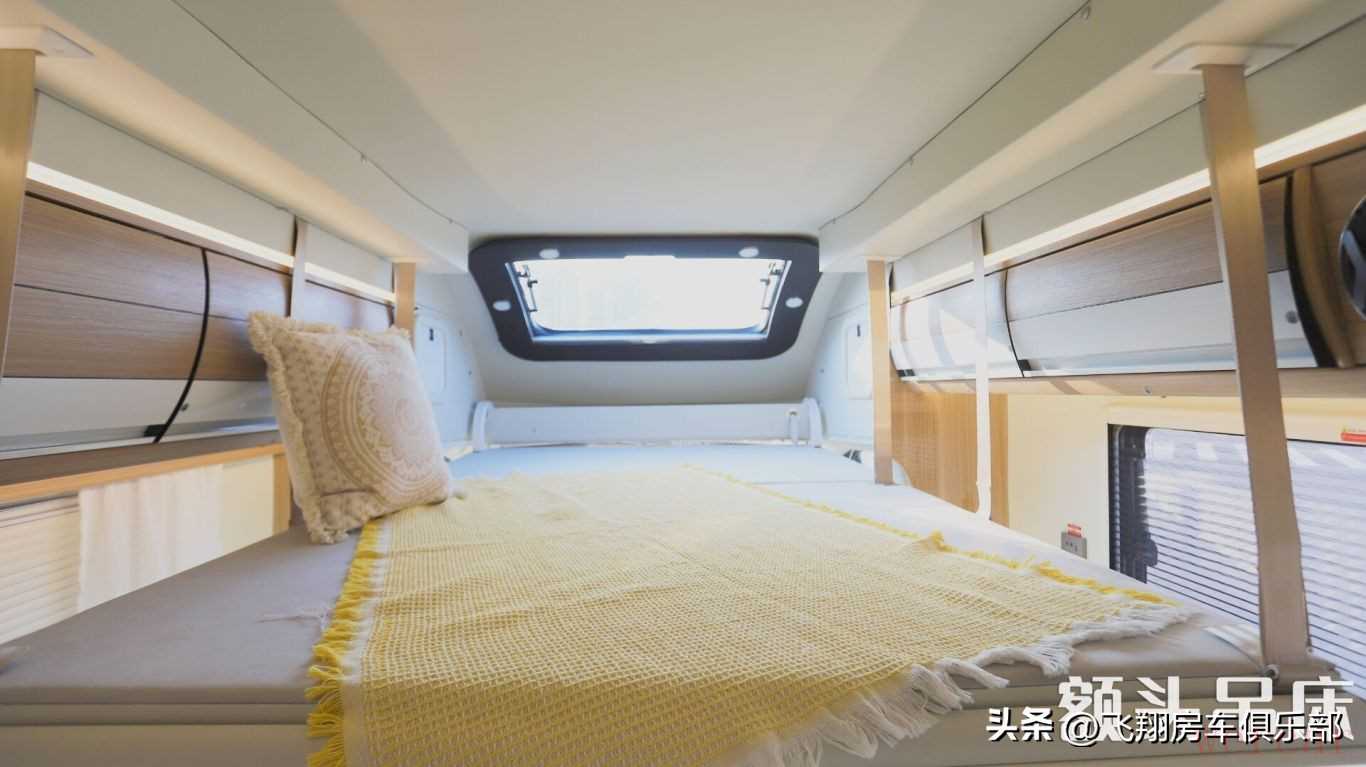 会客区上方的吊柜采用铝合金材质,不仅轻量化、还配备电动锁,安全又实用,大容量设计足以存放厚被褥等物品。当然,咱家的专利产品升降吊床也是配备到位啦!白天收起时不占用空间,夜晚降下后秒变1.3×2m超大双人床,对于多人出行的旅行来说,实用性大大提升。