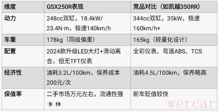 一句话结论:1.68万的GSX250R是“新手学费”的最佳解决方案,但绝非性能玩家的终极答案。