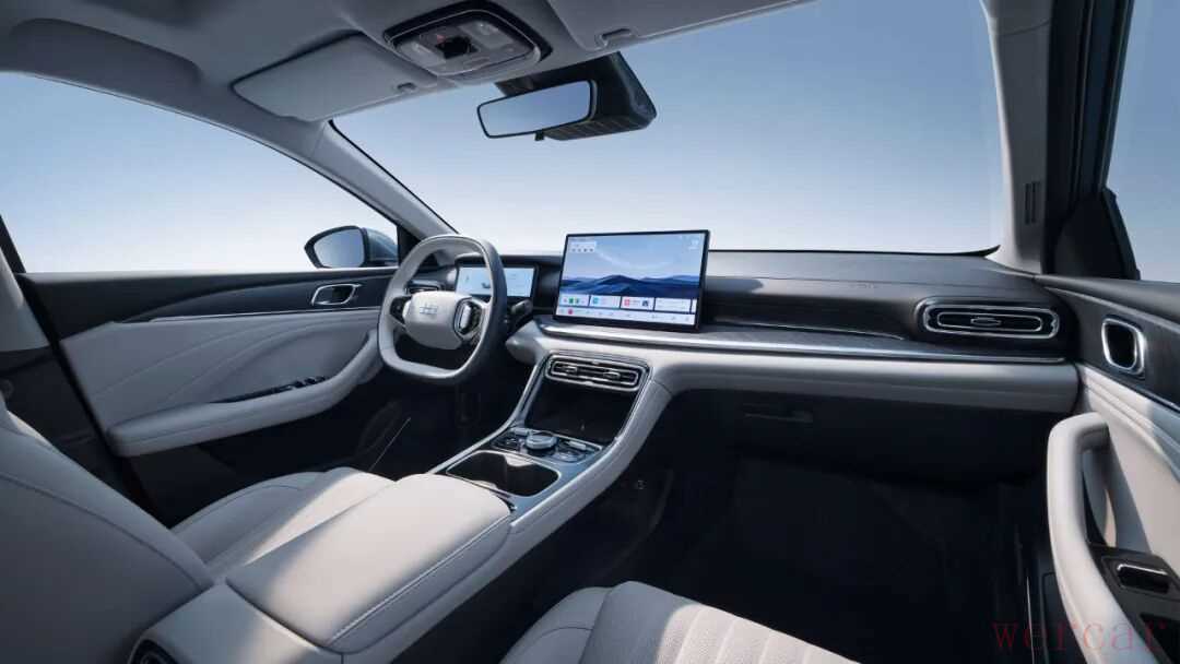 还有头等舱棉花糖 0 压座椅、前排座椅通风加热等等。同时,搭载 Flyme Auto 智能座舱系统,车机采用 7nm 龍鹰一号自研车规级芯片;支持 HUAWEI HiCar 、Carlink 等车手互联功能。