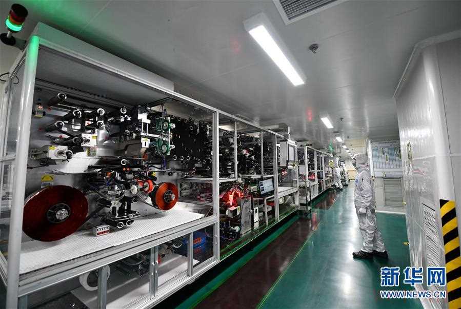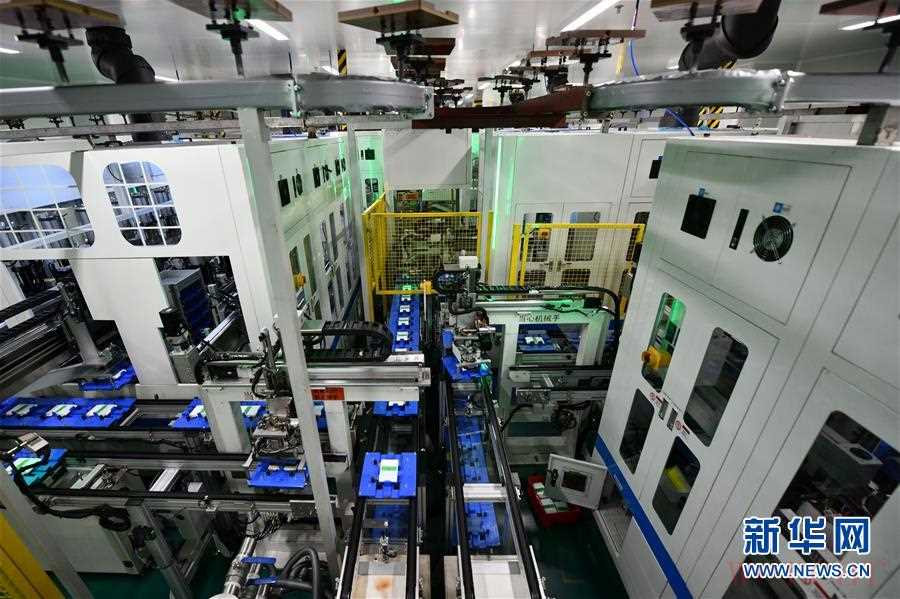 这是天津力神六期甲工厂生产车间一景(12月9日摄)。 天津力神电池股份有限公司创立于1997年,是一家国家高新技术企业,具有100亿瓦时锂离子蓄电池的年生产能力,国际高端市场占有率位居全球锂电行业前列。 近年来,力神电池在智能制造方面加大投入。2017年底力神电池耗资约13亿建设的智能工厂——天津力神六期甲工厂投产,3条自动化生产线每日可生产车用锂离子动力电池约3万6千块,相较于之前人力密集型的粗放生产,产能提升约6倍,企业走上高质量发展之路。 新华社记者李然摄