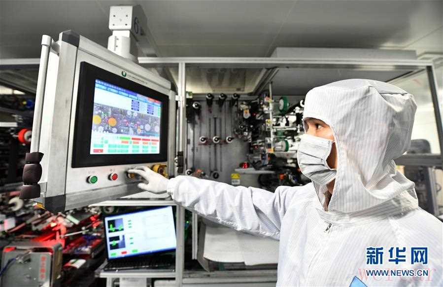 12月9日,在天津力神六期甲工厂生产车间,员工在操控设备。 天津力神电池股份有限公司创立于1997年,是一家国家高新技术企业,具有100亿瓦时锂离子蓄电池的年生产能力,国际高端市场占有率位居全球锂电行业前列。 近年来,力神电池在智能制造方面加大投入。2017年底力神电池耗资约13亿建设的智能工厂——天津力神六期甲工厂投产,3条自动化生产线每日可生产车用锂离子动力电池约3万6千块,相较于之前人力密集型的粗放生产,产能提升约6倍,企业走上高质量发展之路。 新华社记者李然摄