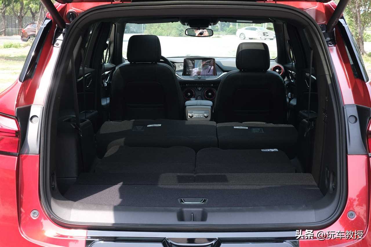 行李厢空间我想说真的没啥可挑剔的,除非一大家子都住里面否则怎么也够用了。用一个量化的数字说,7座版本行李厢容积为222-1970L,5座版本行李厢容积为1017-2103L。第二排、第三排放倒后平整度也完全没问题,应急睡一晚上按理说都可以。