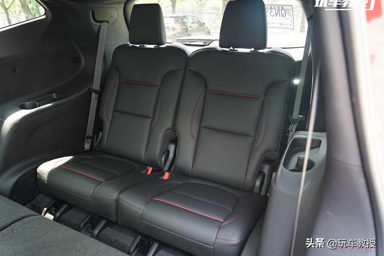 第三排在7座SUV的基础之上已经算是很出色的了,腿部能有个不错的放松,而不至于是“蹲着”,所以它不仅仅是应急,中途旅行我认为身材不高的人在第三排也是可以接受的。但是受外部造型影响,第三排的三角窗面积比较小,通透性差一些,长途乘坐可能难免压抑。
