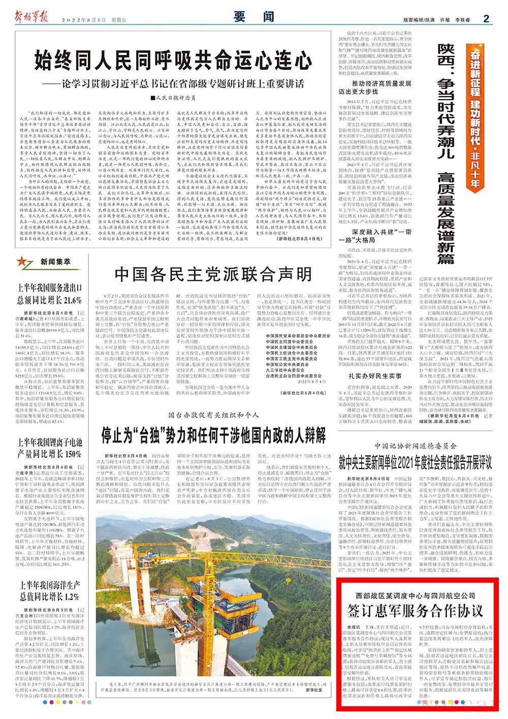 近日,西部战区某调度中心与四川航空公司签订惠军服务合作协议:
