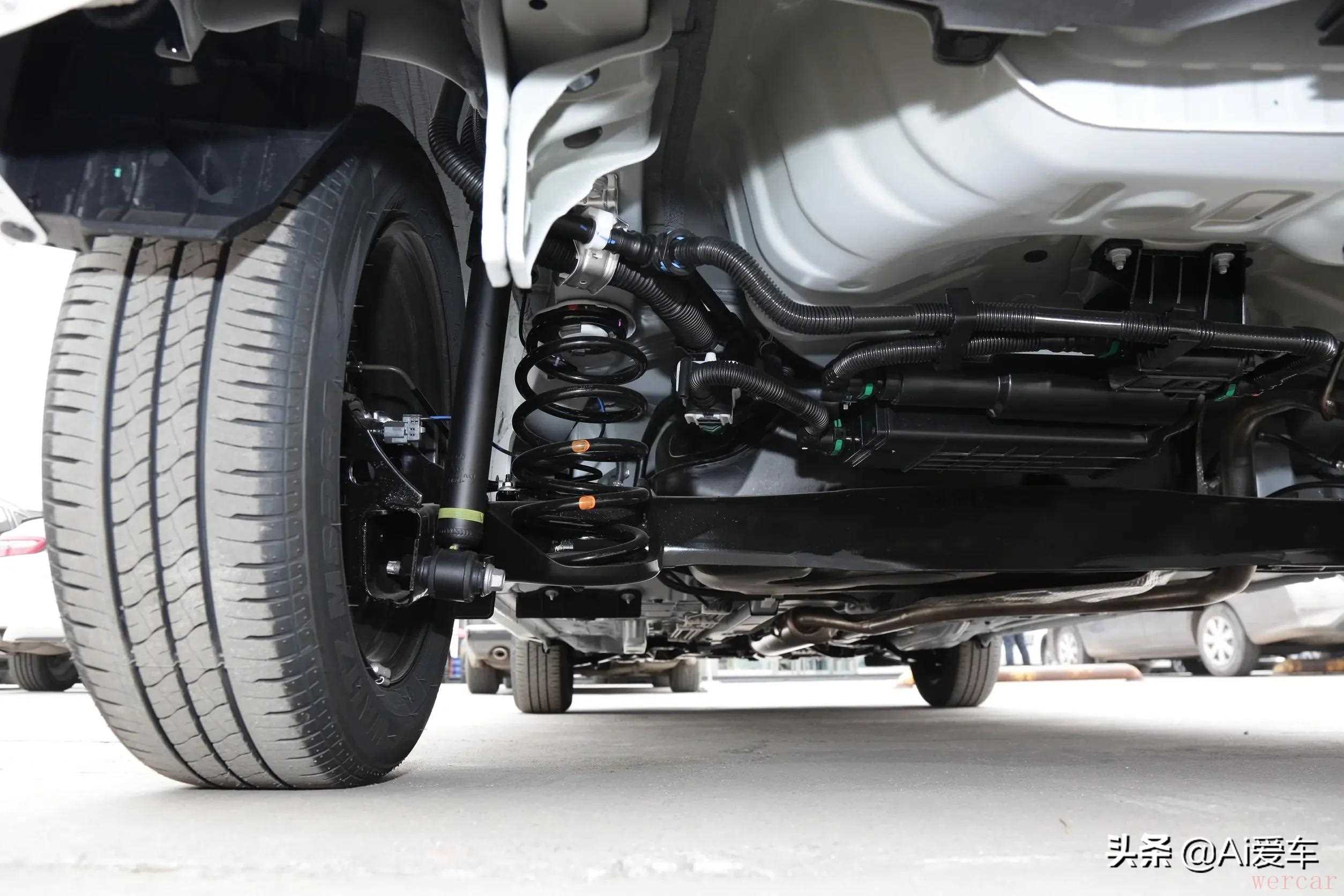 底盘前麦弗逊式独立悬挂,后纵臂扭转梁式非独立悬挂,前置前驱,有ECO驾驶模式,整备质量1115kg、满载质量1500kg。