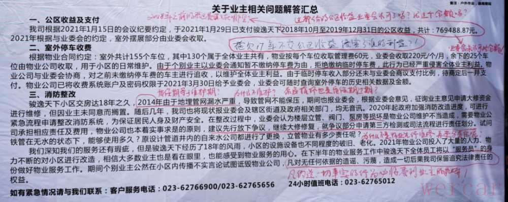 看似比较常规的工作汇报,却有细心的业主发现,在“关于业主相关问题解答汇总”一栏中,物业的罔顾事实,是不负责任的表现。