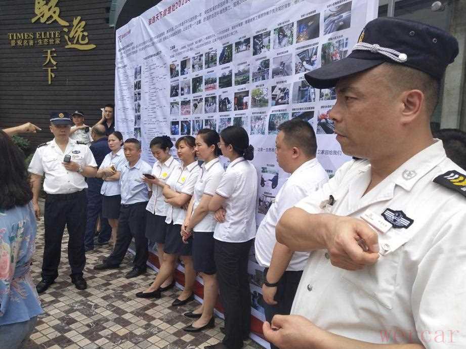 面对此时蛮横的物业人员,业委会无奈只能报警。最后,在警察的见证下,业主撕毁了物业摆放在大门口的虚假宣传。