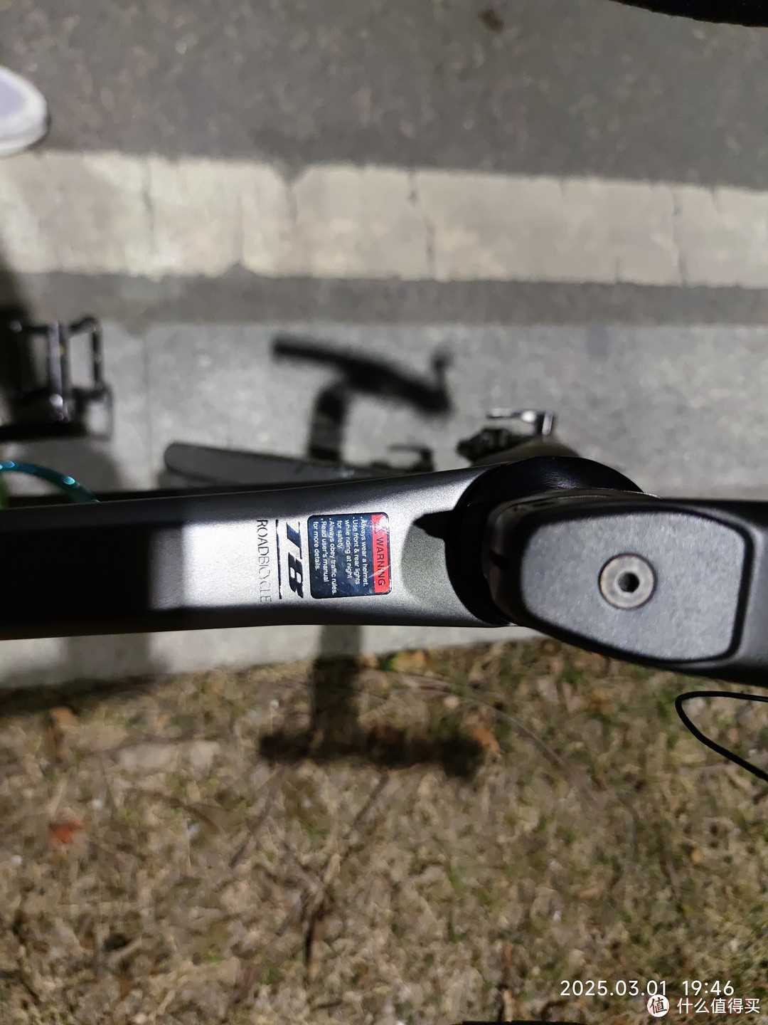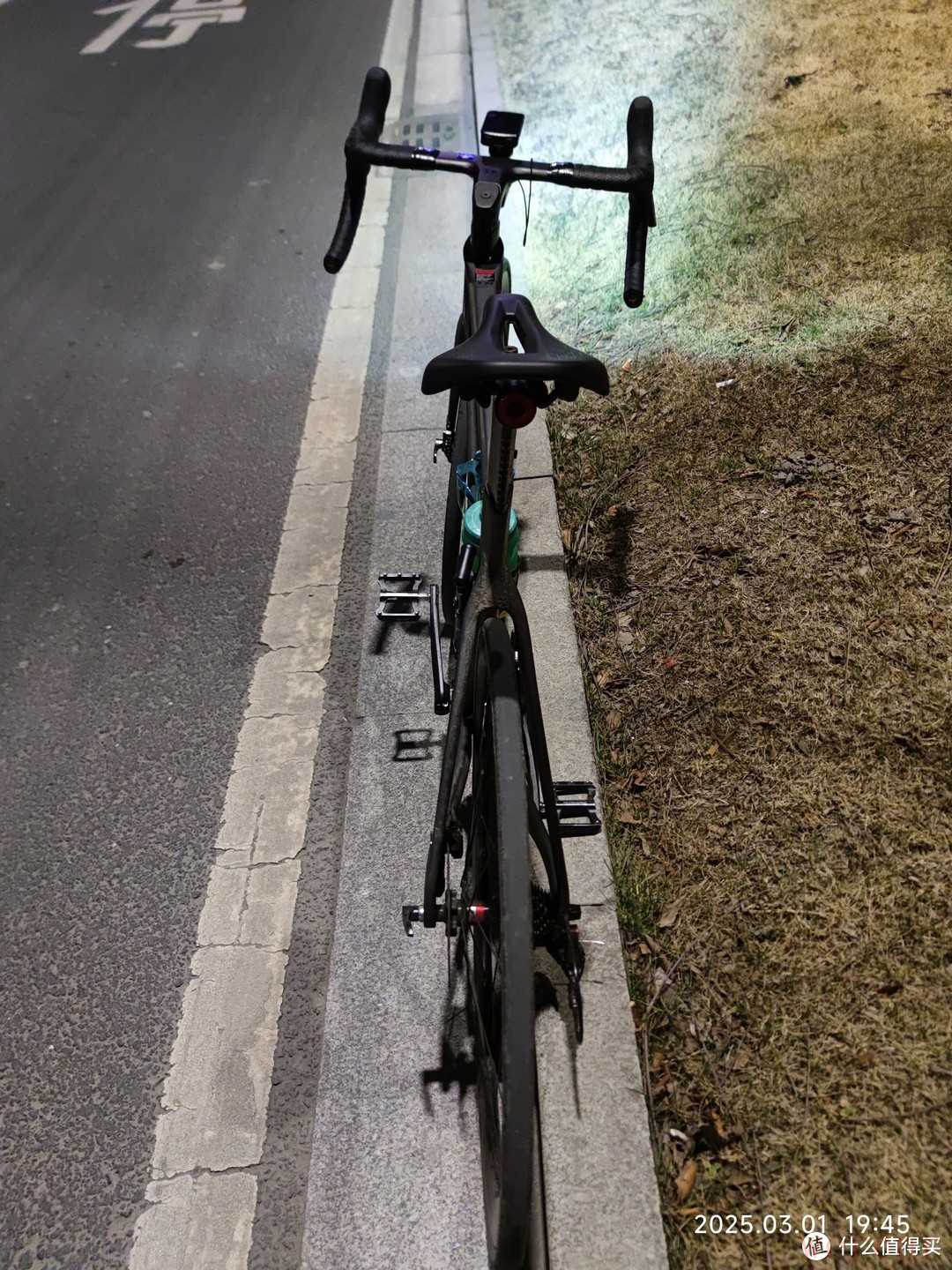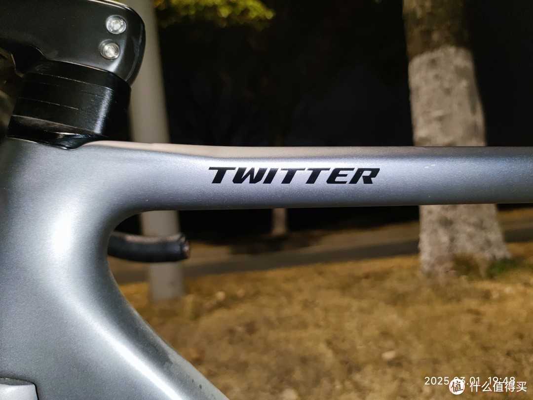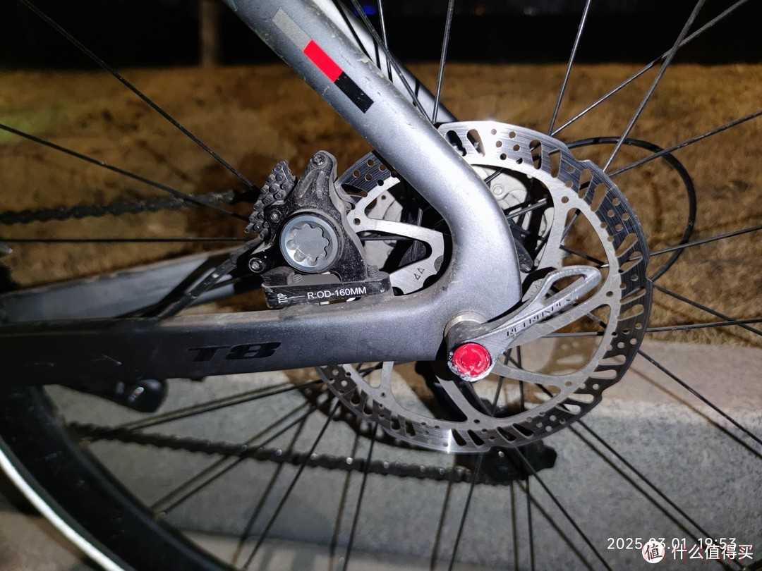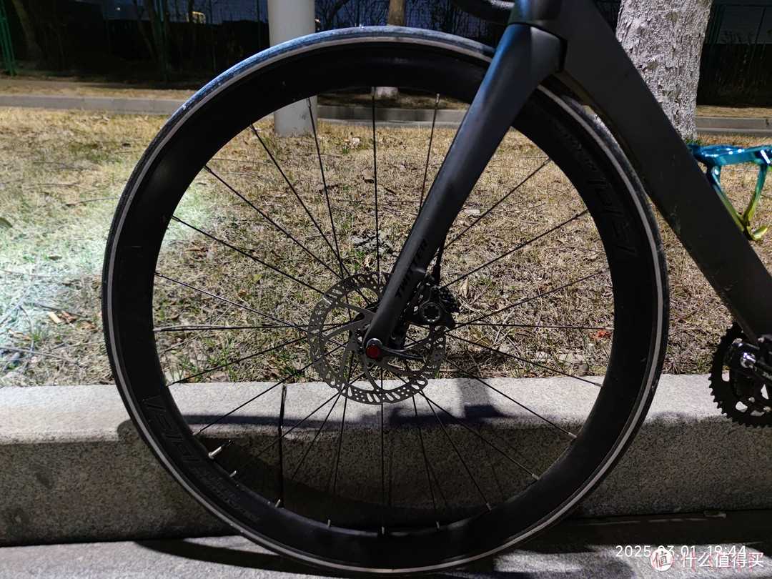 夜间骑行最需要注意的就是安全,虽然我都会选择比较亮的路面骑行,但是我还是为自己装了一个骑行灯。骑行灯很亮,足够照亮我前进的道路。龙头下面有一个大写的“T”的铭牌,这是骓特logo,他的设计还是挺好看的,在灯光下视觉角度不同,就可以呈现出不同的色彩。