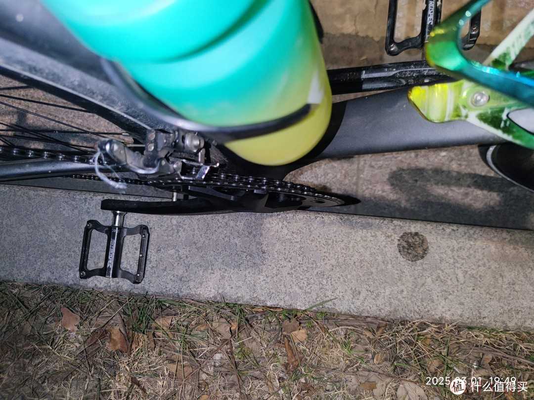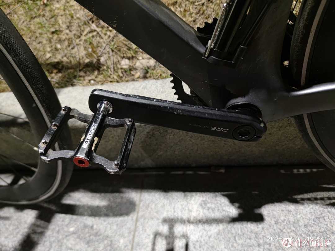 他的牙盘是驭勇品牌,PR1中空牙盘。我对自行车的了解并不是特别多,所以不知道这个品牌的质量到底怎么样?不过在骑行的时候感觉还是挺棒的,没有异响,骑行很顺畅,两档变速也是非常的灵活。